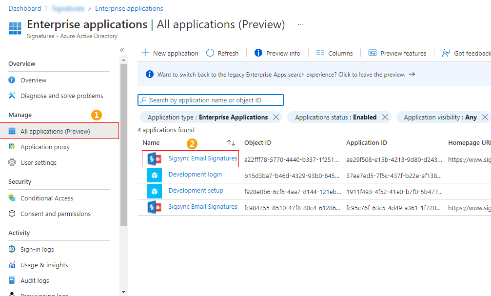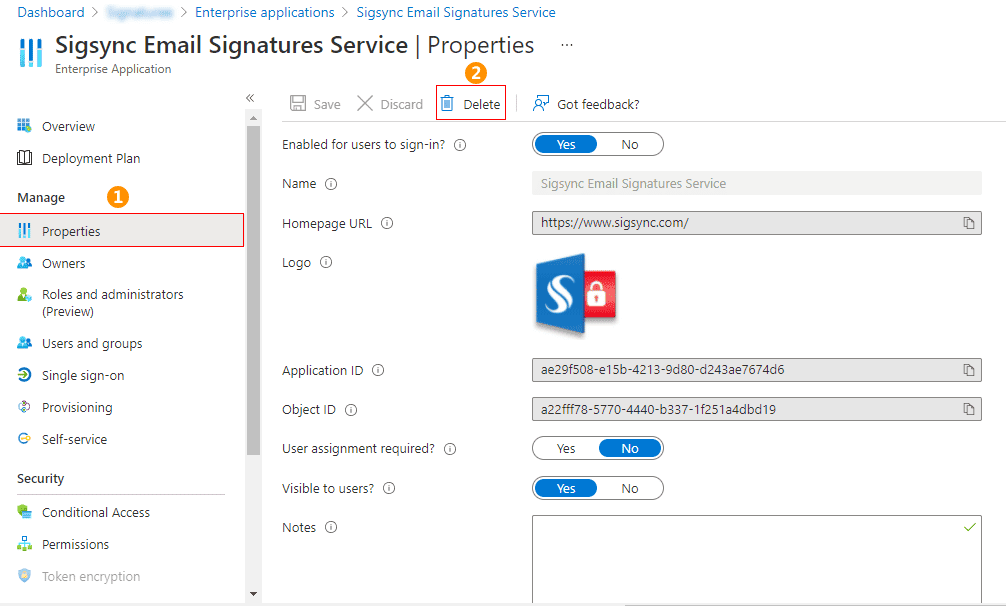 Delete Sigsync installations from Azure Active Directory