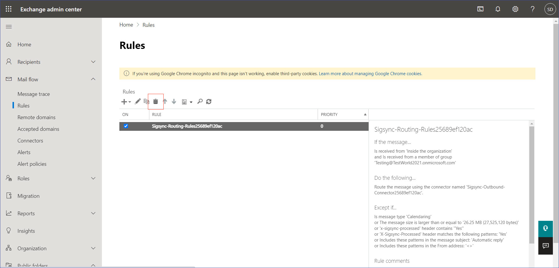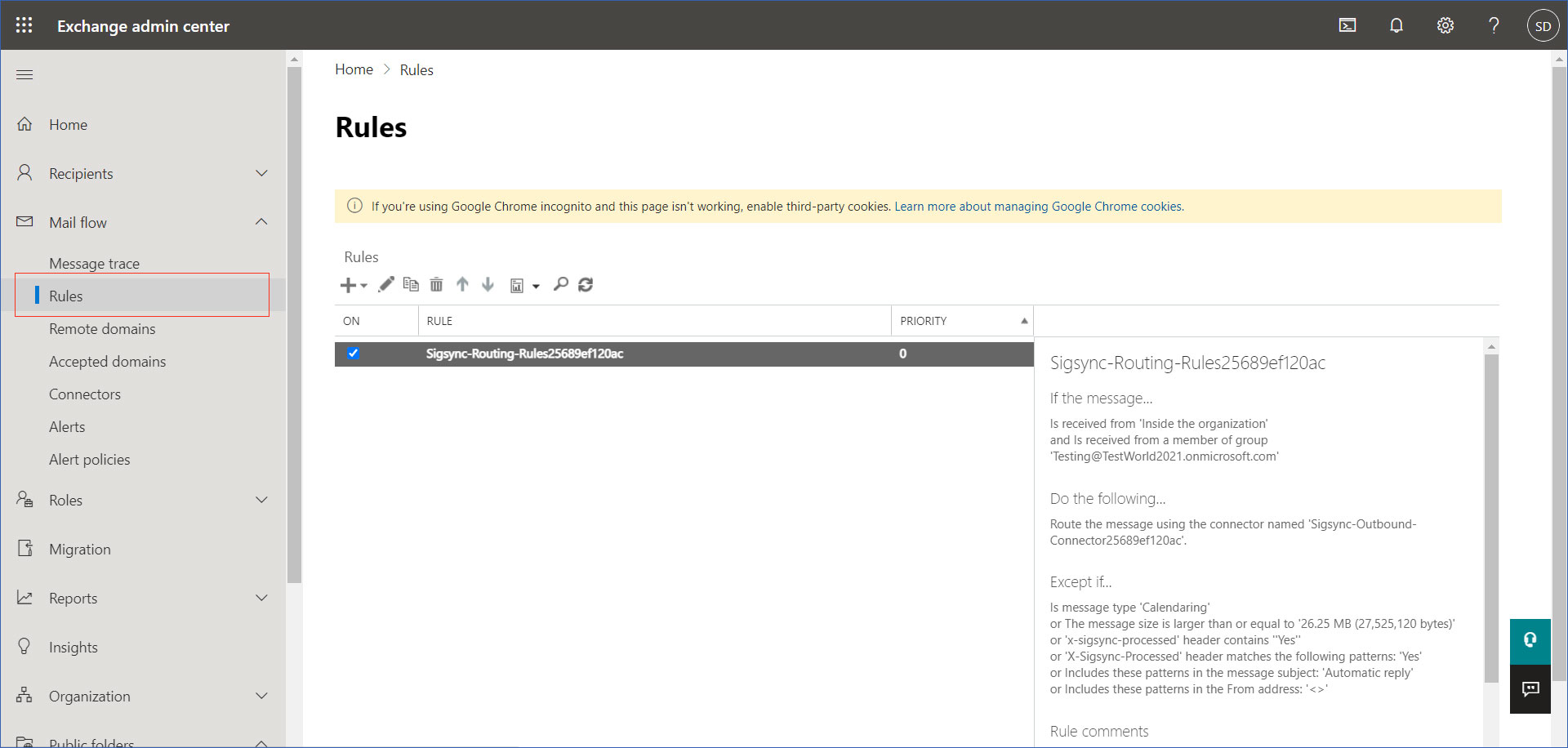 - Go to Mail flow and select Rules.