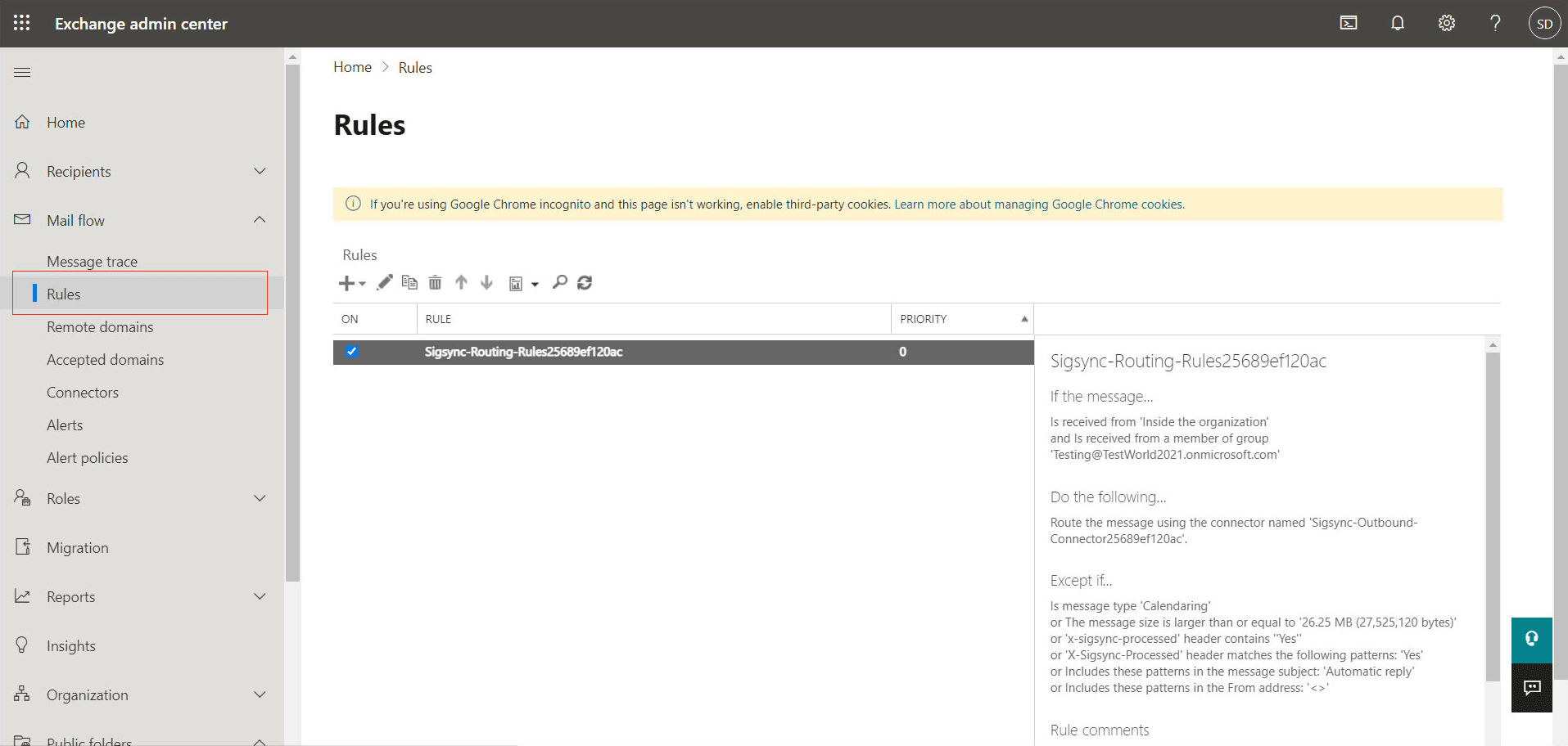 You can remove the Sigsync connector and its associated transport rule once your tenant has been properly provisioned. Use the following procedure to achieve this: