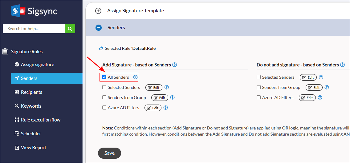 - Set Signature Rules for defining the scope of users (senders) who will have access to the Signature template