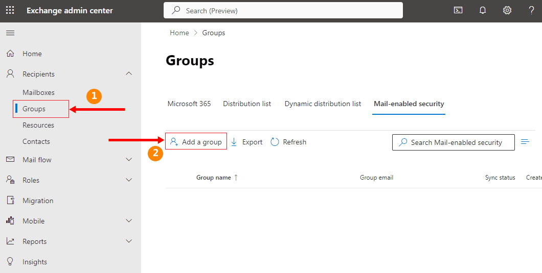 Click here for the steps to create a group in Office 365 and adding members to the Active Directory group