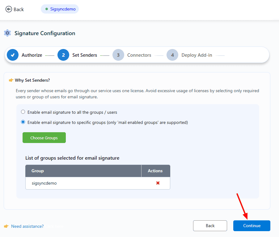 Follow these steps to set up Sigsync email azure service for a single user or a specific group of users: