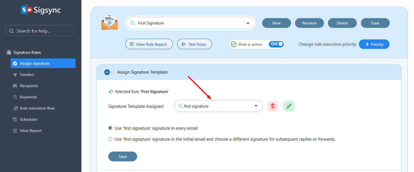 Sigsync Office 365 Email Signature Management Software provides flexible options to assign multiple signatures to a single user based on specific conditions. To set up two different signatures for an individual sender, you can create separate signature rules using keyword-based conditions and link each rule to a different signature template. While composing the email, the user simply includes the defined keyword in the message to trigger the corresponding signature.