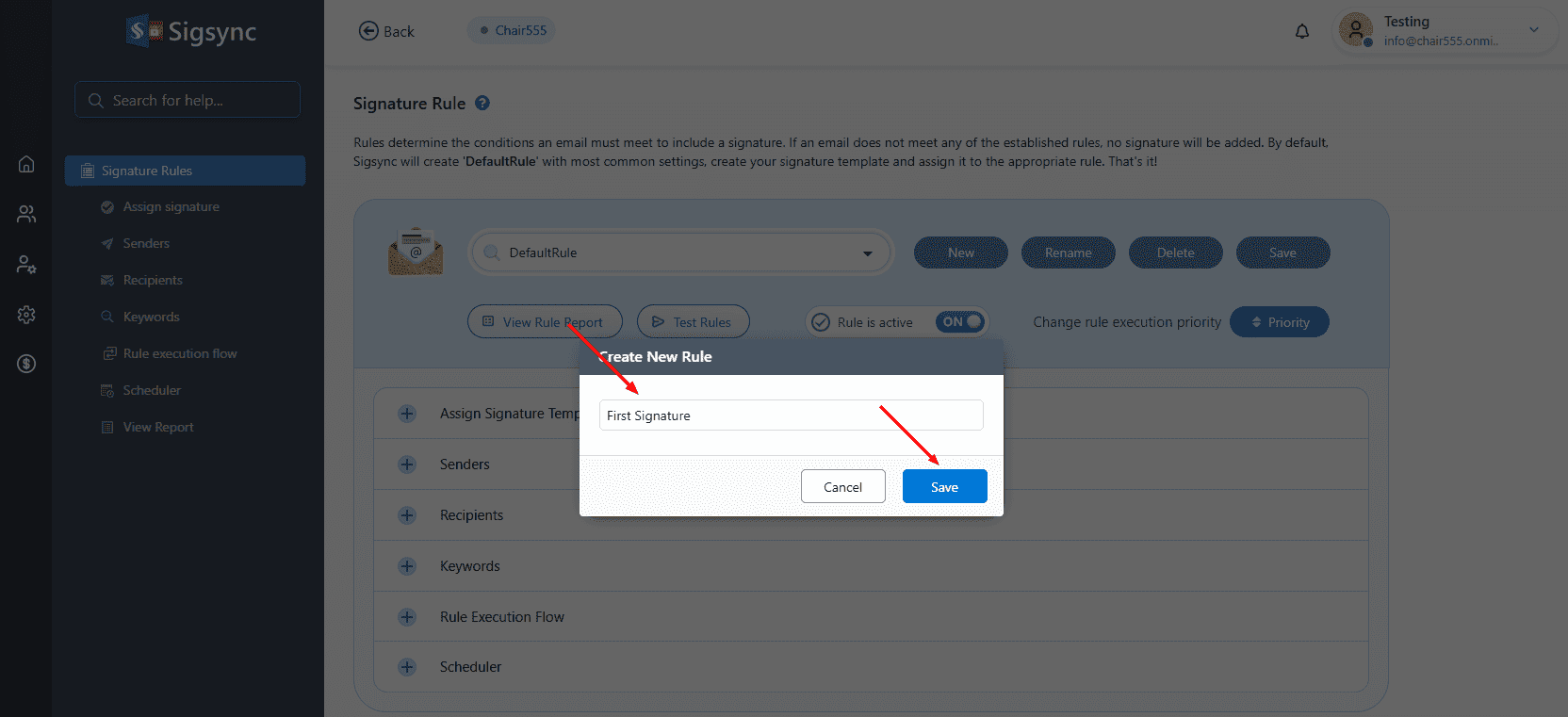 - Click ‘New’ button to create the signature rule