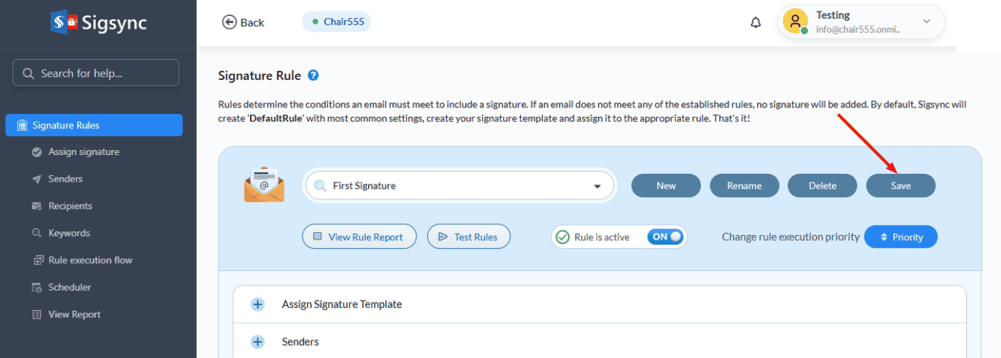- Select 'Manage Signatures' > 'Signature Rules' tabs from the dashboard.