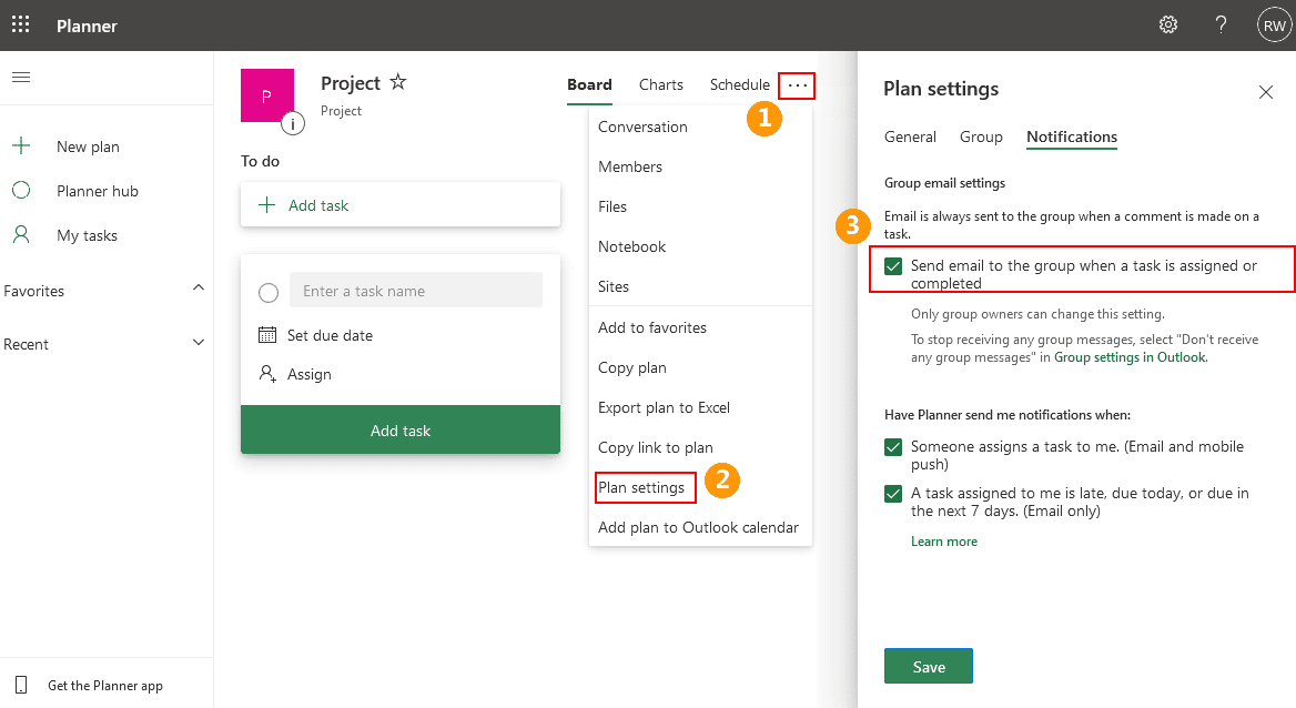 Steps to Enable Task-Related Notifications in Microsoft Planner