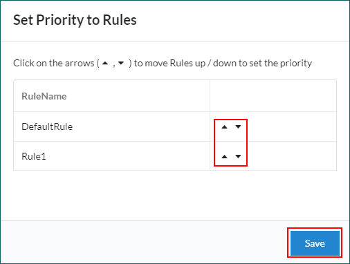 - Set the rule priority based on the requirement using the arrow button ( ) in the rule page.