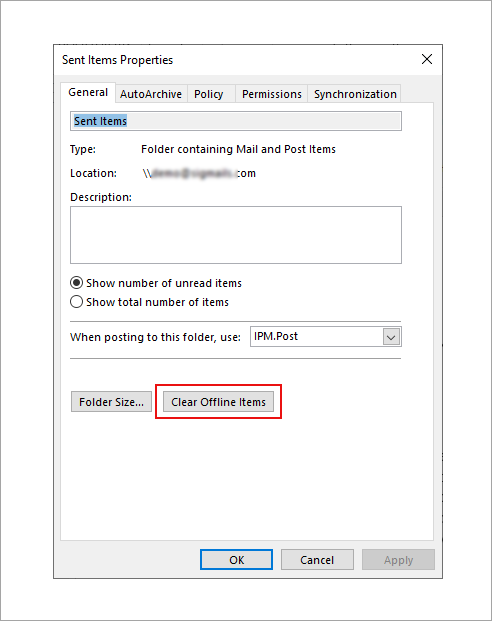- In Outlook, right-click on your Sent Items folder and choose Properties from the shortcut menu.
