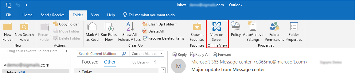 Note: Enabling Online View will not update your Outlook cache, the program connects to your Exchange server every time you click on View on Server.