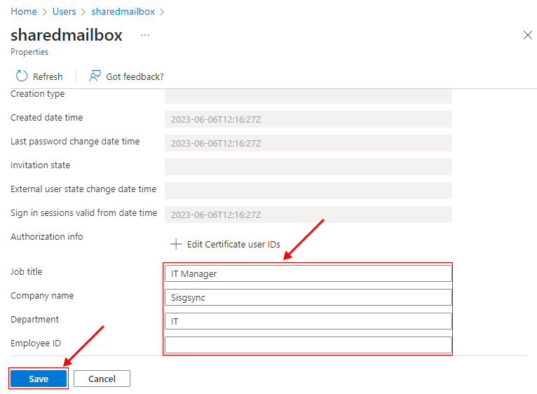 Step 2: Add or edit Active Directory properties (profile) for Shared mailboxes