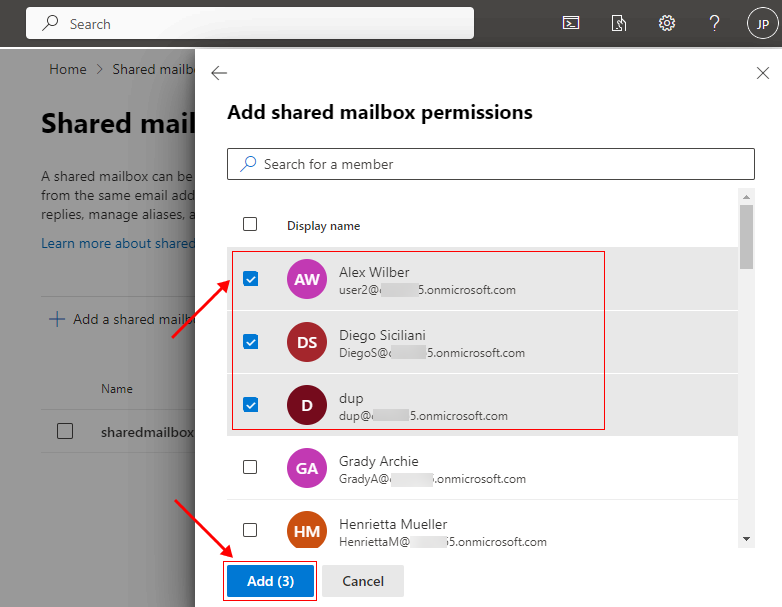 - Select the members you want to set the delegate rights and click the ‘Add’ button