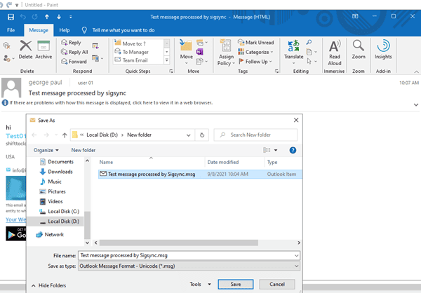 Note: The recipient’s reply is not enough to check if the message was properly routed through Sigsync service, instead request the recipient to send you a file having the original message.