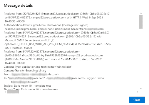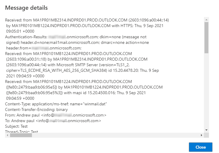 - You can see the Email header details in the window that appears.