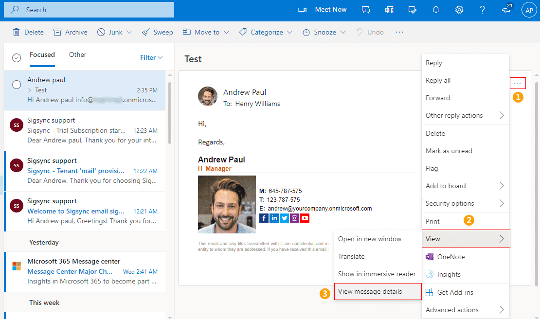 How to view an Email header in Office 365 and OWA?