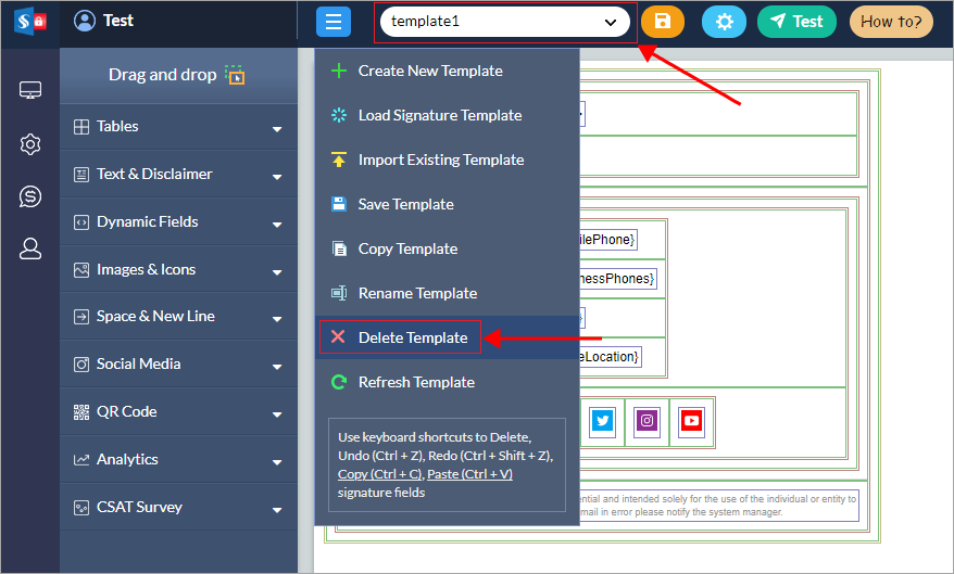 ( ) Delete – You can delete saved template from the list as shown in below screenshot. Click '' icon next to choose templates button. Then, select the template you want to delete from the list of templates and click the '' icon as shown in below screenshot.
