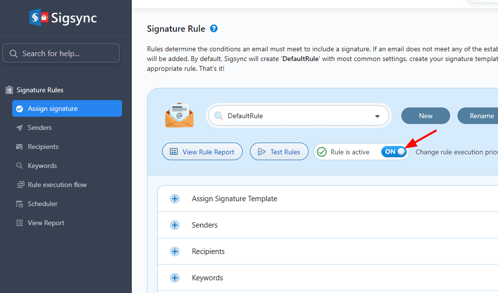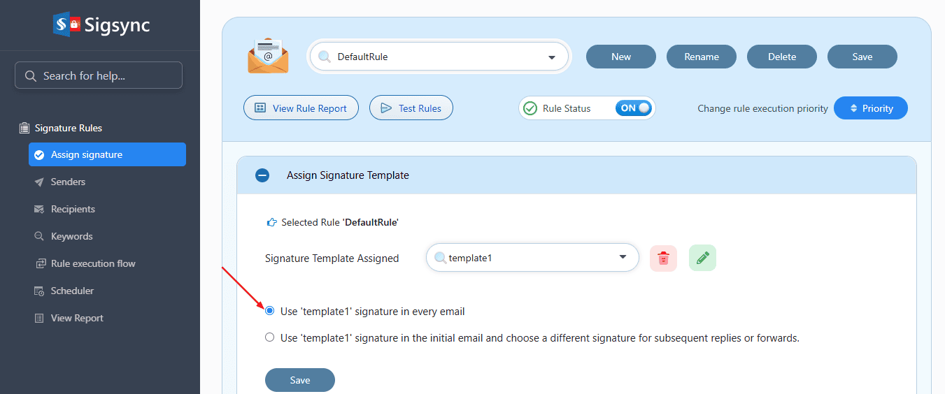 1. Select 'Manage Signatures' > 'Set Signature Rules' tab from the dashboard.
