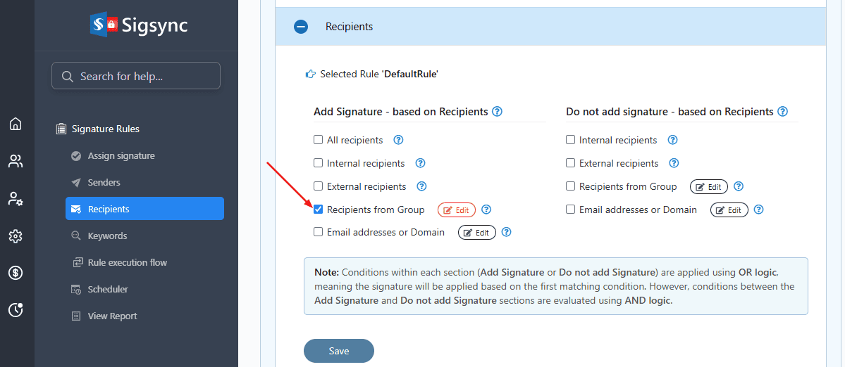 Setting Signatures to specific Active Directory groups using Signature Rules