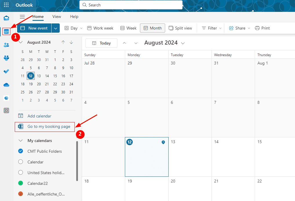 - Click the calendar icon from the left pane, and click ‘Go to my booking page’