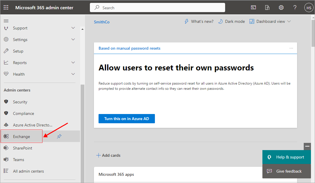 - Step 2: Click 'Show all' open the Admin centers and then navigate to the 'Exchange' tab
