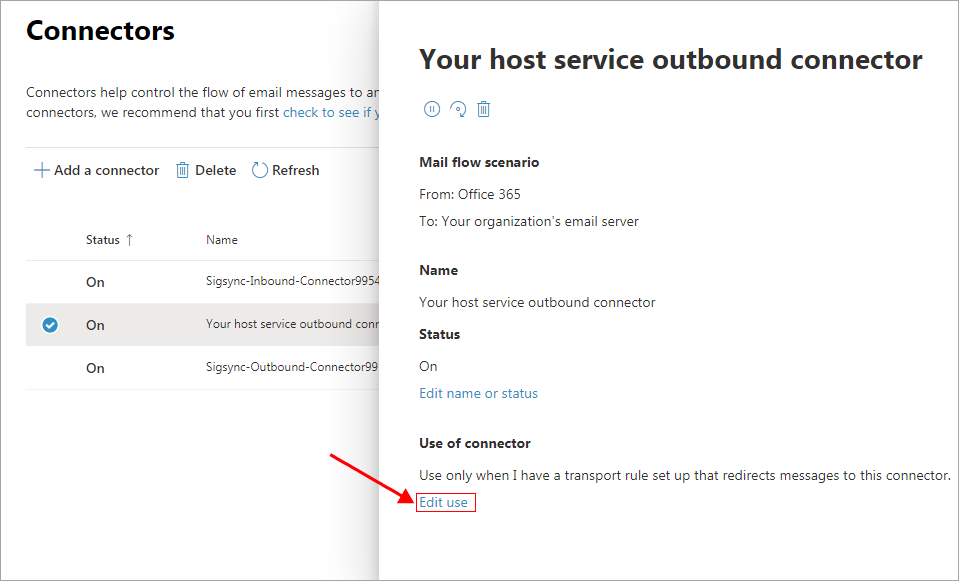 - Step 5: Click the ‘Edit use’ under the ‘Use of connector’.