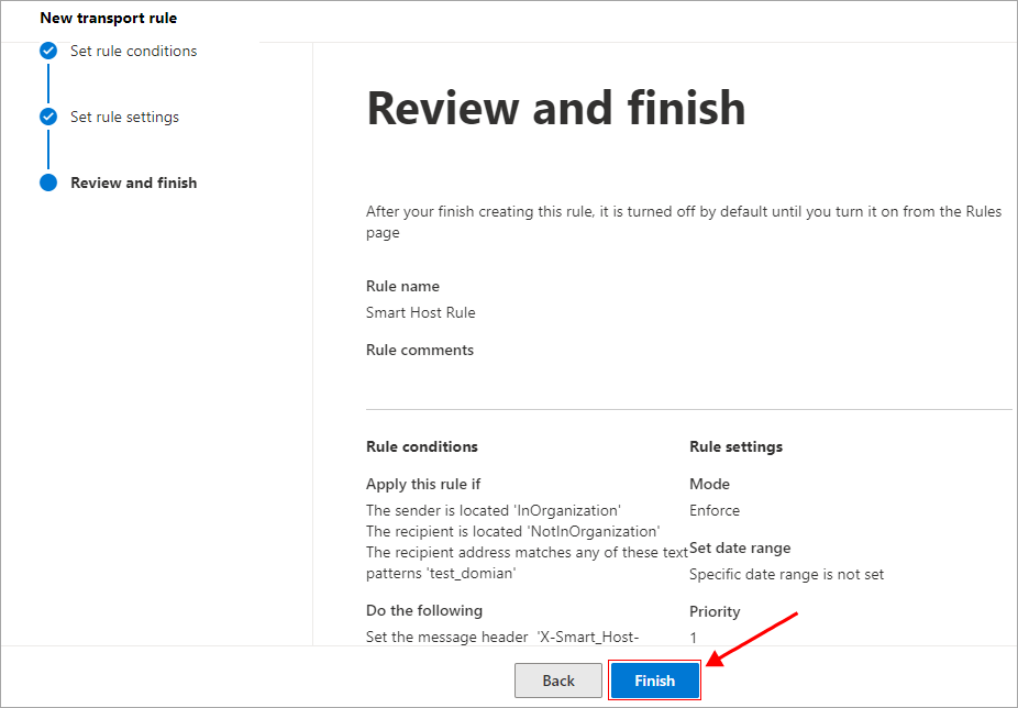 - Step 3: Click the ‘Finish’ button to complete the rule creation process
