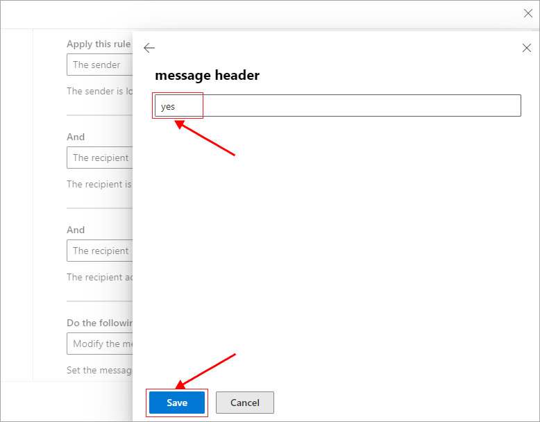 - Step 5: Enter the message header value as ‘yes’ and click the ‘Add’ button and ‘Save’ the changes