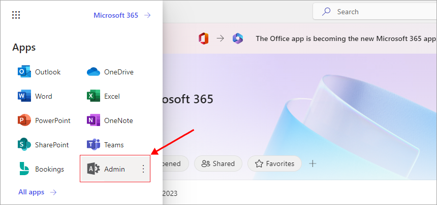 - Step 1: Log in to the Office 365 portal using your global administrator credentials and locate the 'Admin' icon.