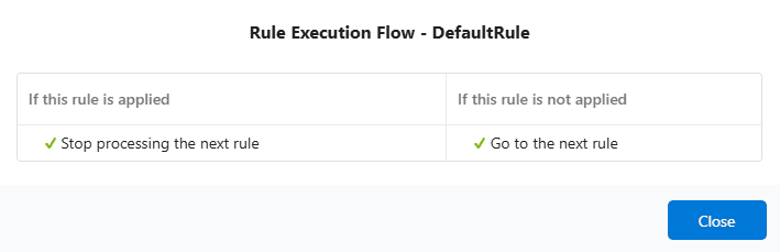 - Click ‘View’ in the ‘Rule Flow’ column to view the Rule Execution Flow conditions.