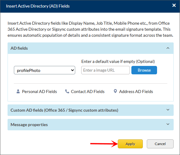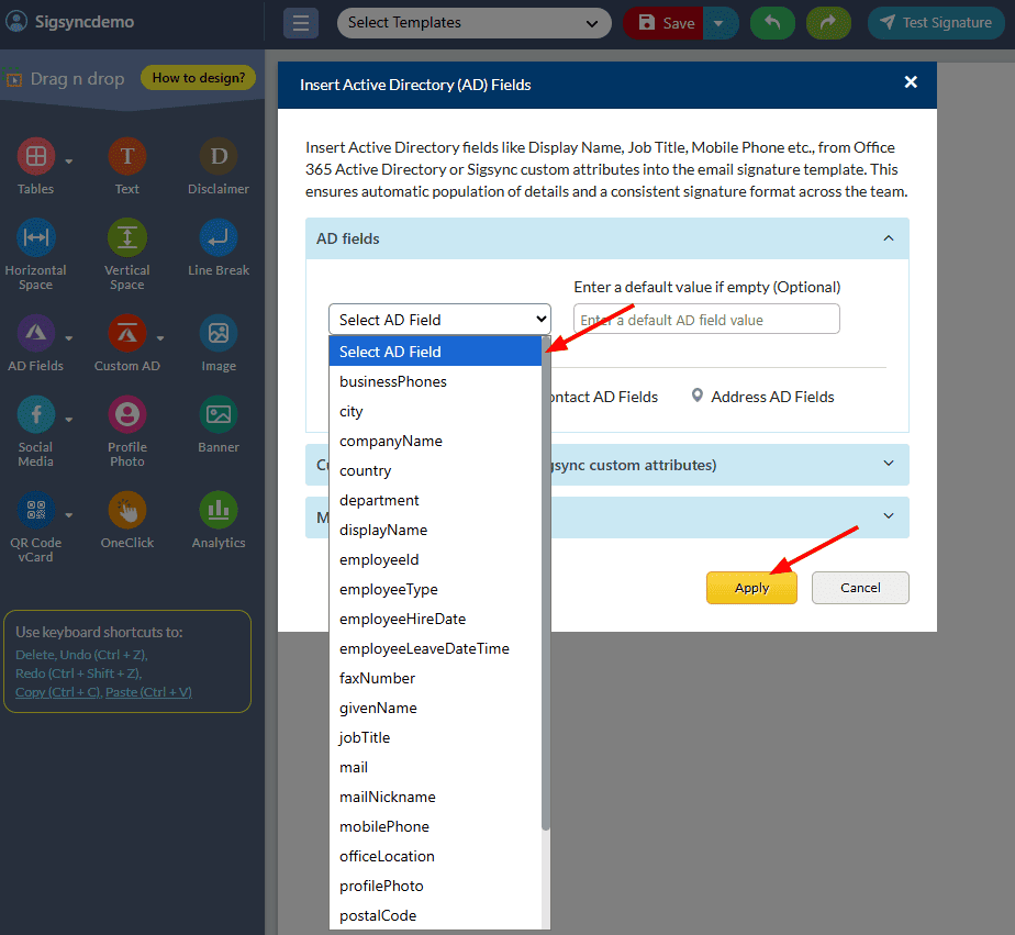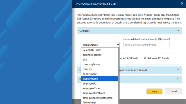 Select the required Active Directory fields from the list and click the 'Apply' button