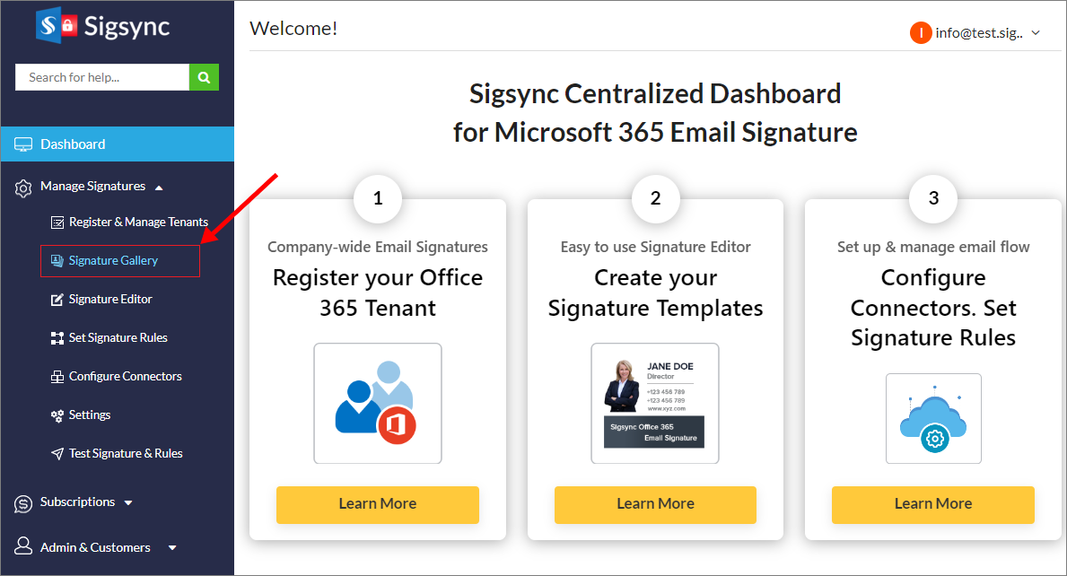 Select 'Manage Signature' > 'Signature Gallery' tab from the Sigsync dashboard